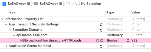 4. NSExceptionAllowsInsecureHTTPLoads 추가 후 value를 YES로 변경