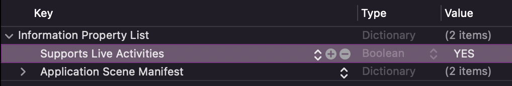 그리고 plist에 가서 Supports Live Activities를 추가하고, Value를 YES로 바꾸면 기본 셋팅은 끝!