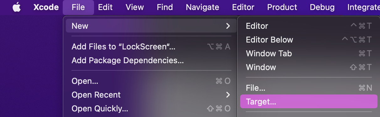 widget 자 우선 File -> New -> Target을 선택하고~