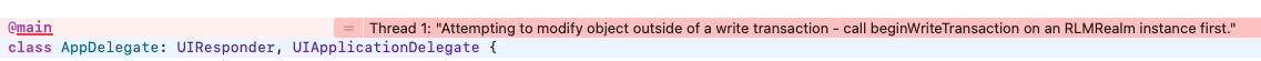 Thread 1: "Attempting to modify object outside of a write transaction - call beginWriteTransaction on an RLMRealm instance first."